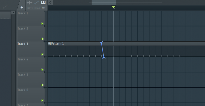 2、然后在需要切割的位置,自上而下地画一条线,FL Studio会沿着这条线对音频进行切割。