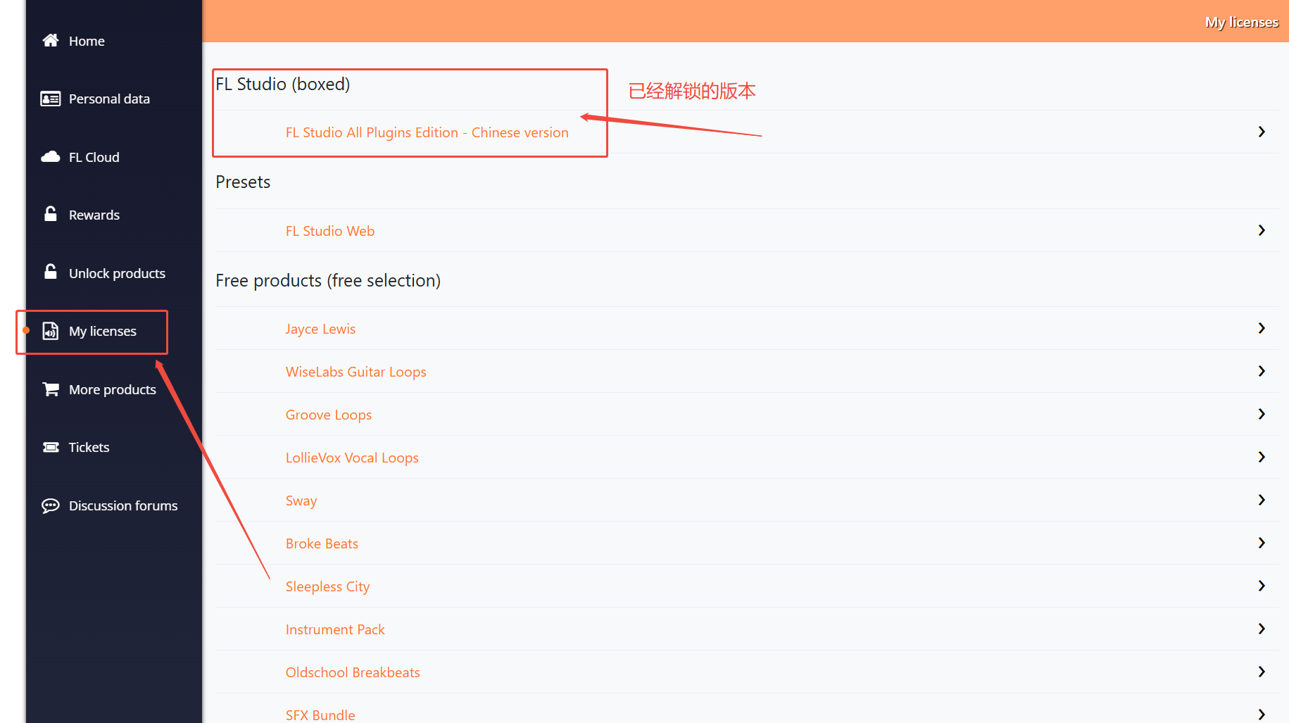 注册好后我们点击左侧菜单的My licenses(我的许可证)查看已解锁的版本,确认无误后我们来激活软件。
