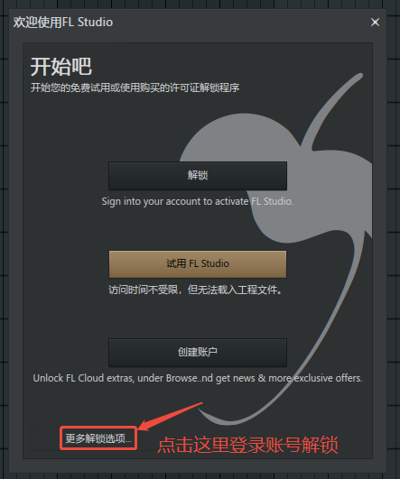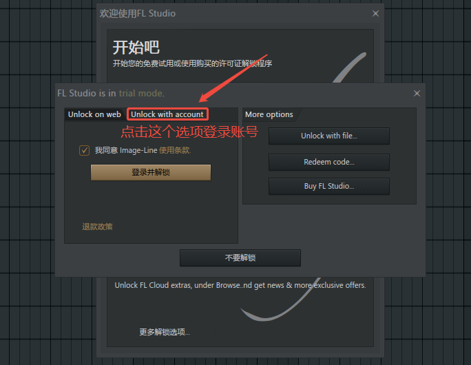 点击之后会出现image-line的账户登录入口,我们在此输入在image-line官网注册的账户密码,点击解锁。