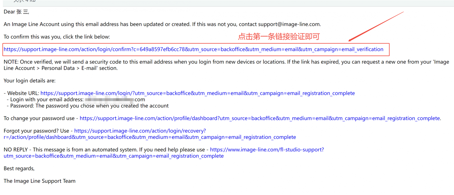 点击邮件内的第一条链接验证即可